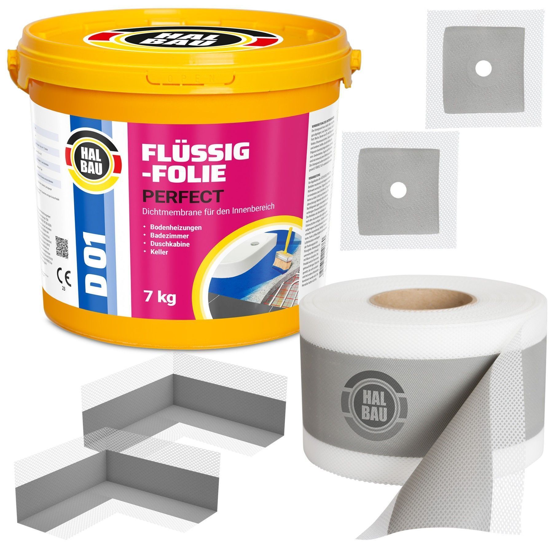 Dichtset Flüssigfolie 7Kg Dichtband 5m Dichtecken Manschetten Ø10 Dusche Bad H12