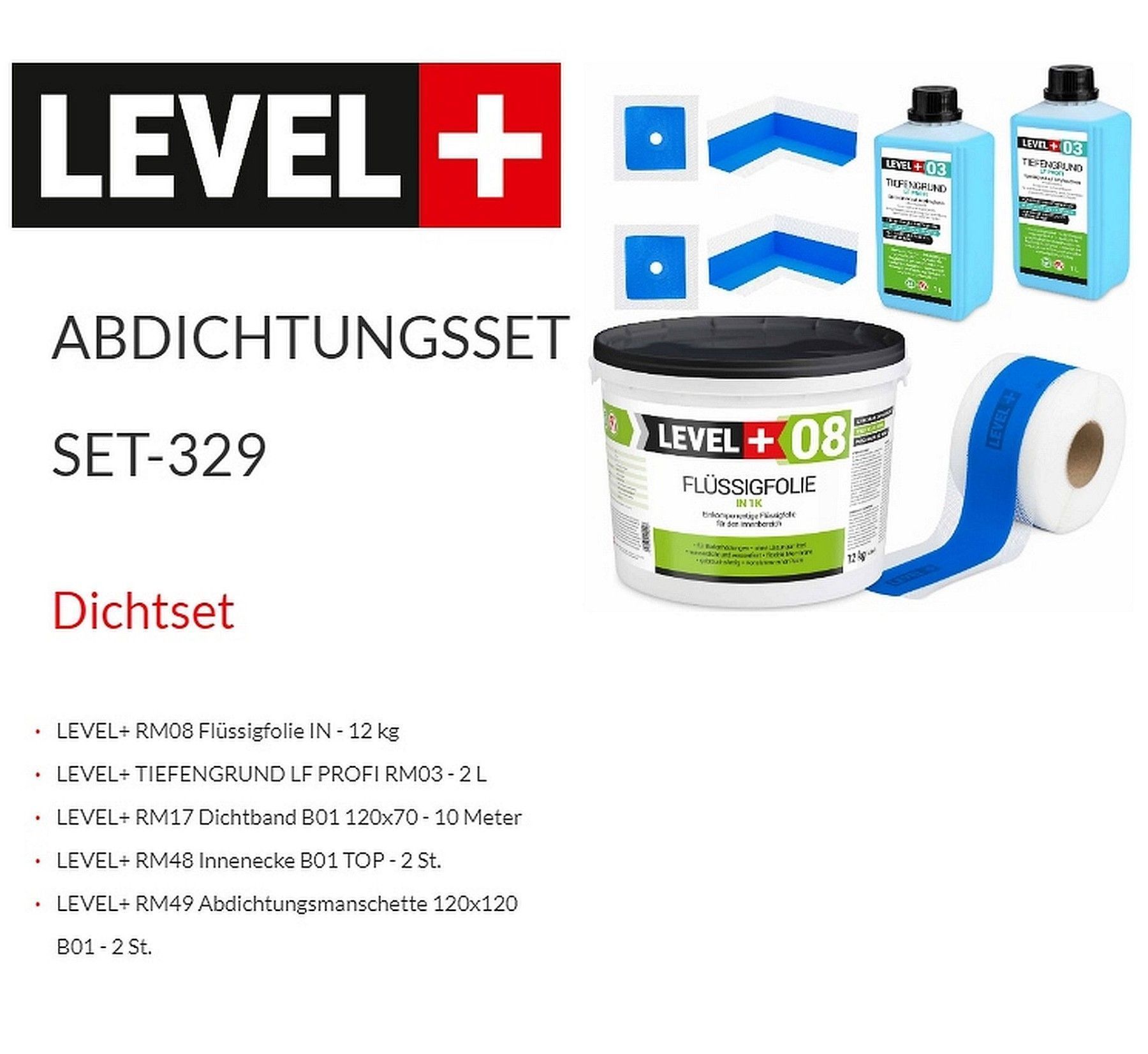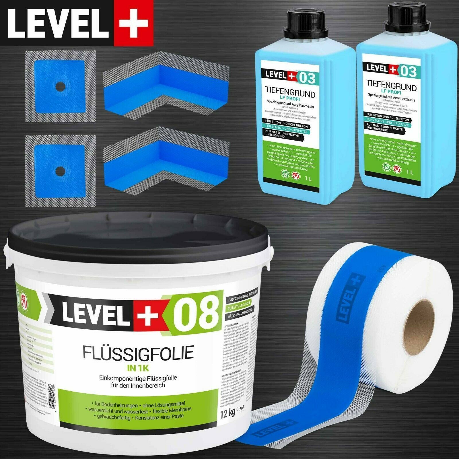 Dichtset für Badabdichtung 12kg Flüssigfolie Dusche Dichtband LEVEL PLUS SET329