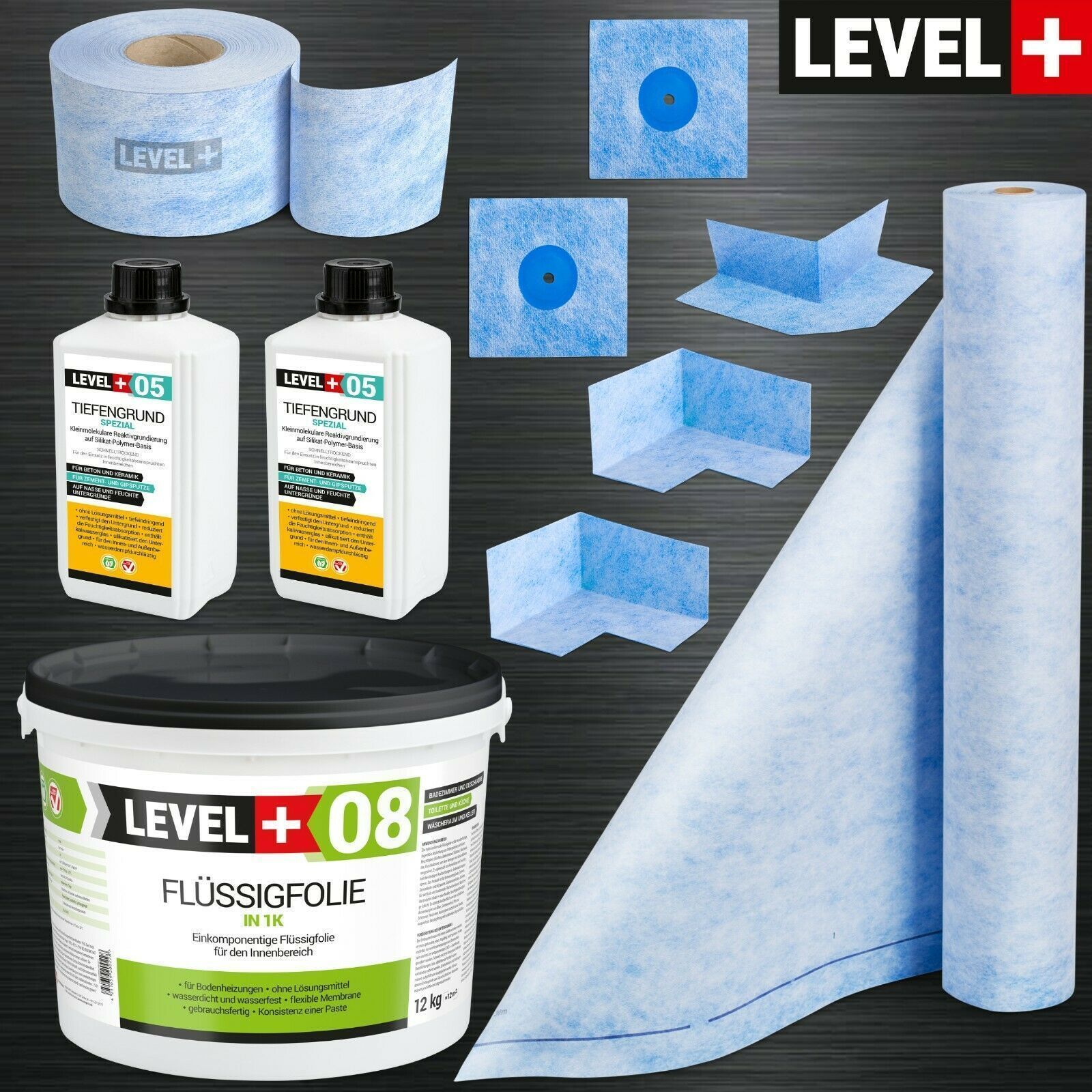 Dichtset für ca 10m² Abdichtung Dusche Bad Dichtbahn 12Kg Flüssigfolie TOP SET42