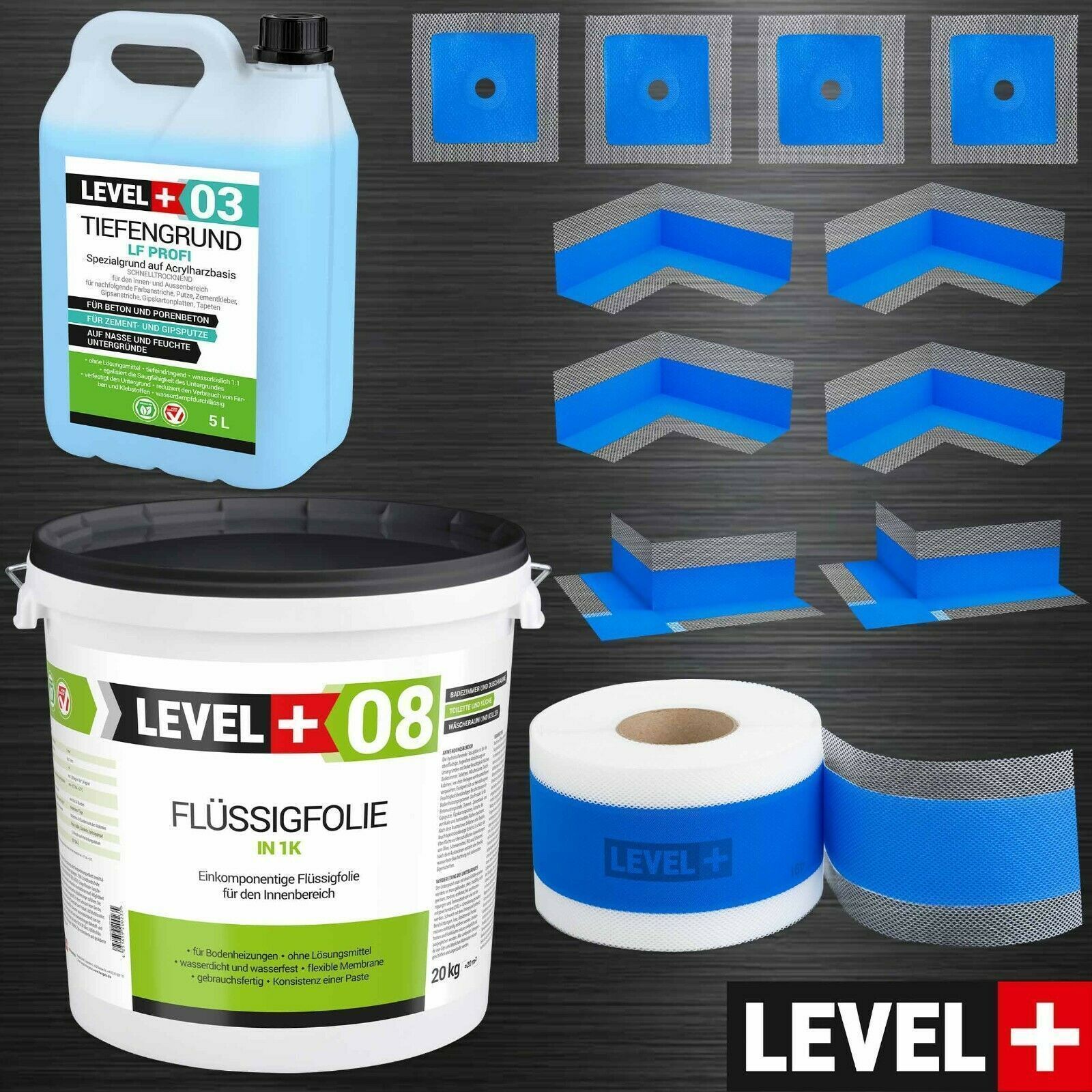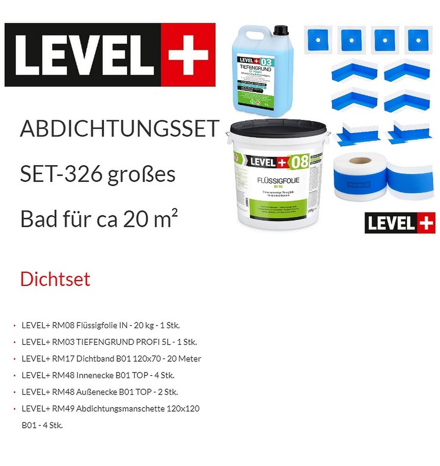 Dichtset großes Bad Badabdichtung Flüssigfolie 20 kg Dichtband Tiefgrund SET326