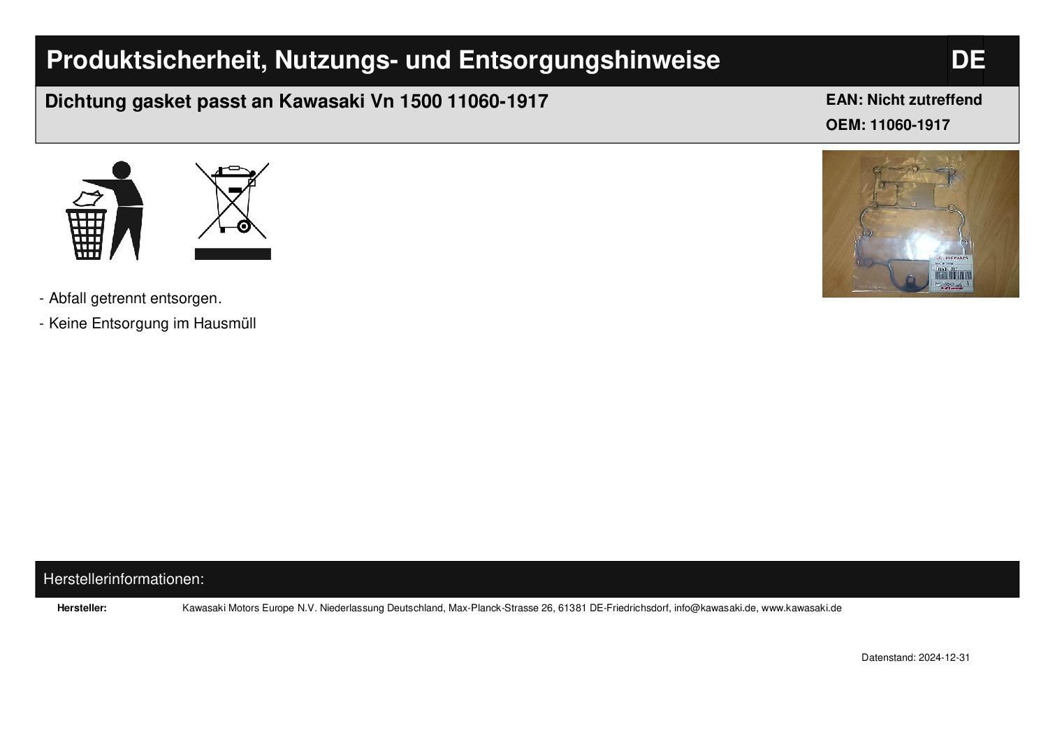 Dichtung gasket passt an Kawasaki Vn 1500 11060-1917