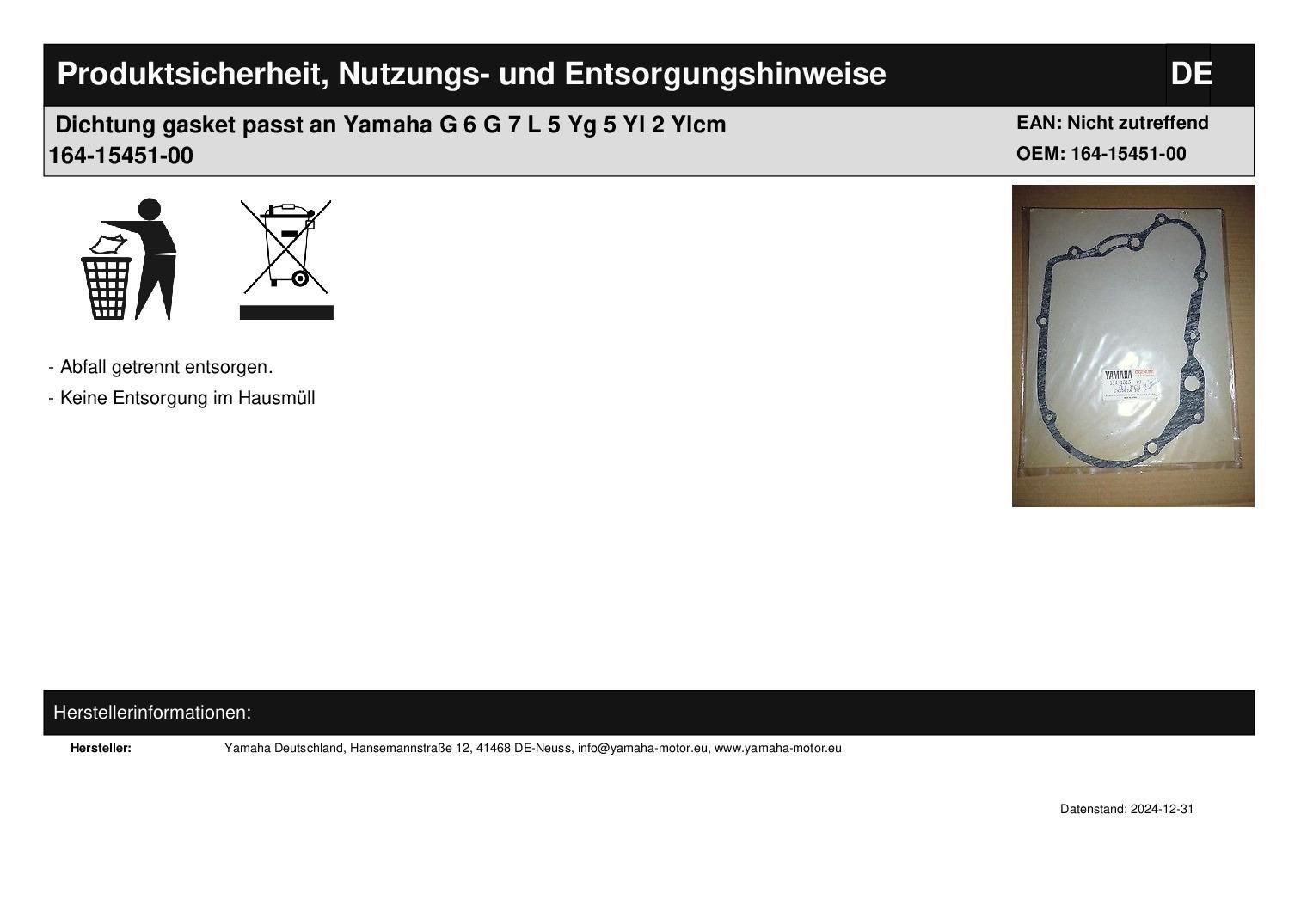 Dichtung gasket passt an Yamaha G 6 G 7 L 5 Yg 5 Yl 2 Ylcm 164-15451-00