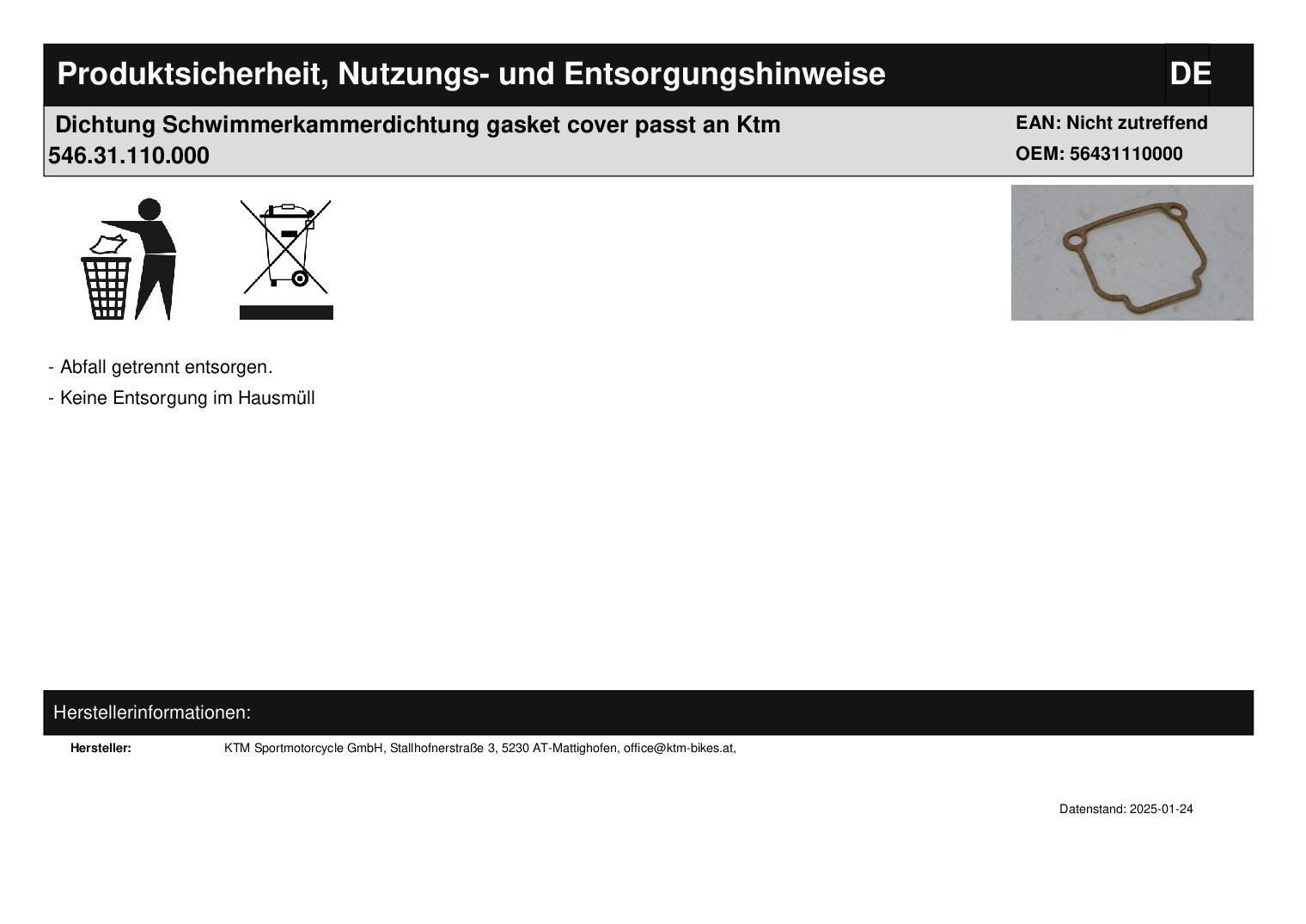 Dichtung Schwimmerkammerdichtung gasket cover passt an Ktm 546.31.110.000