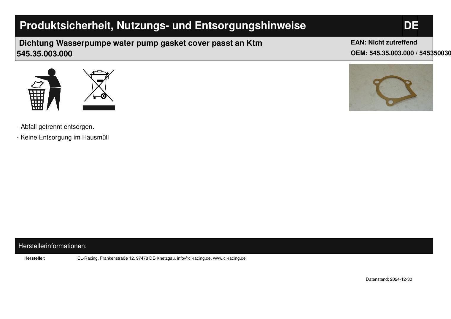 Dichtung Wasserpumpe water pump gasket cover passt an Ktm 545.35.003.000