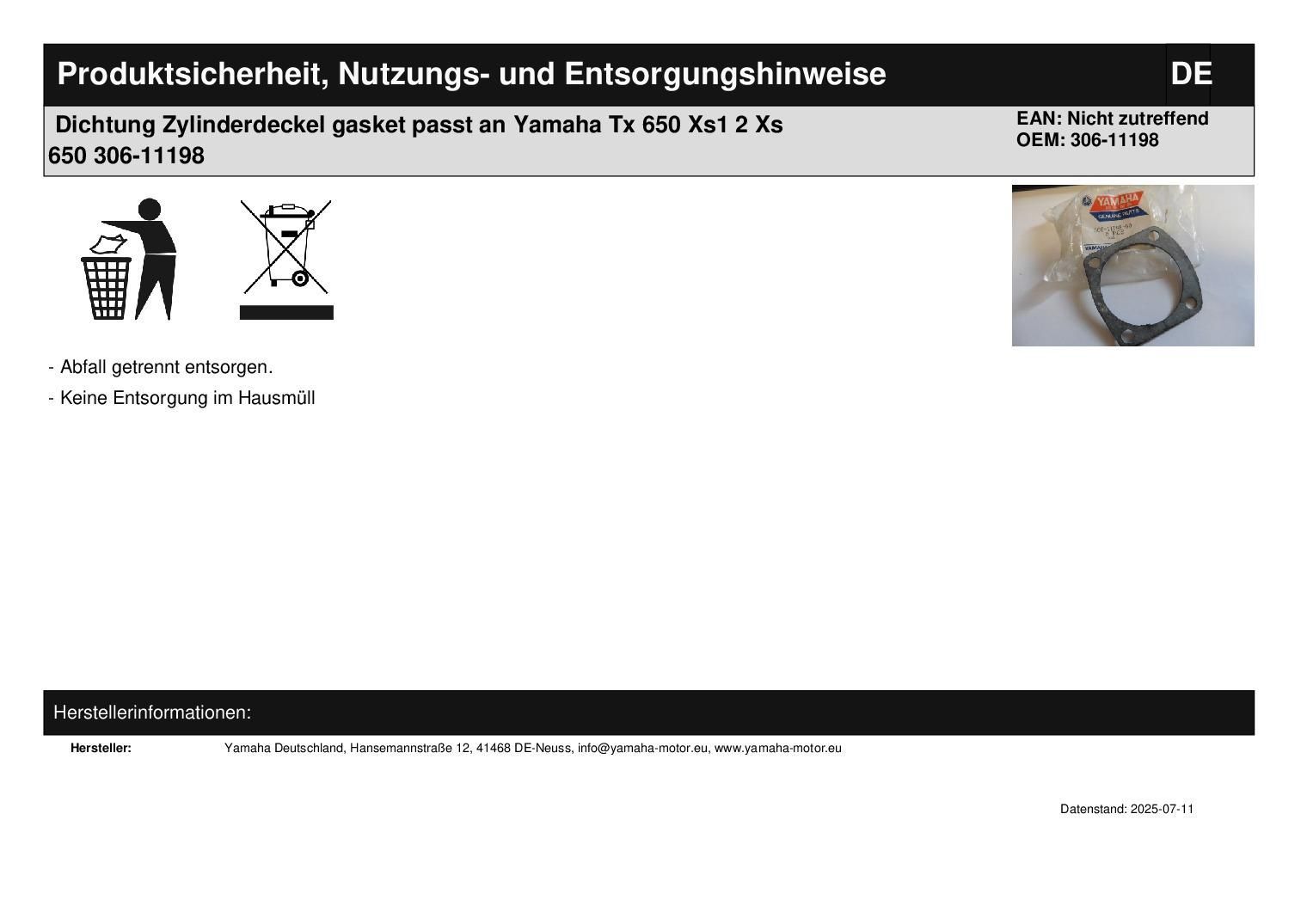 Dichtung Zylinderdeckel gasket passt an Yamaha Tx 650 Xs1 2 Xs 650 306-11198