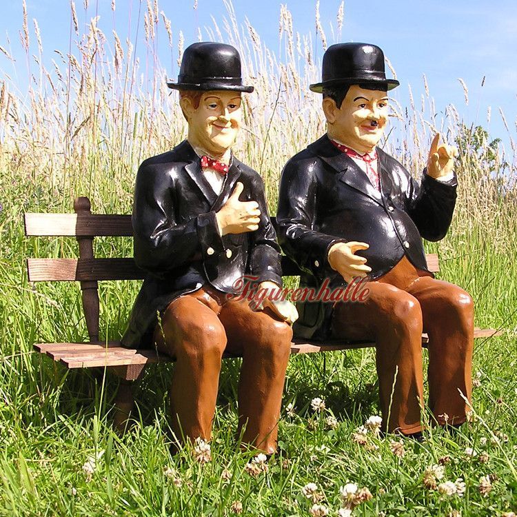 Dick & Doof auf Bank Gartenfigur lustig Dekofigur Aufstellfigur Figur Laurel & Hardy
