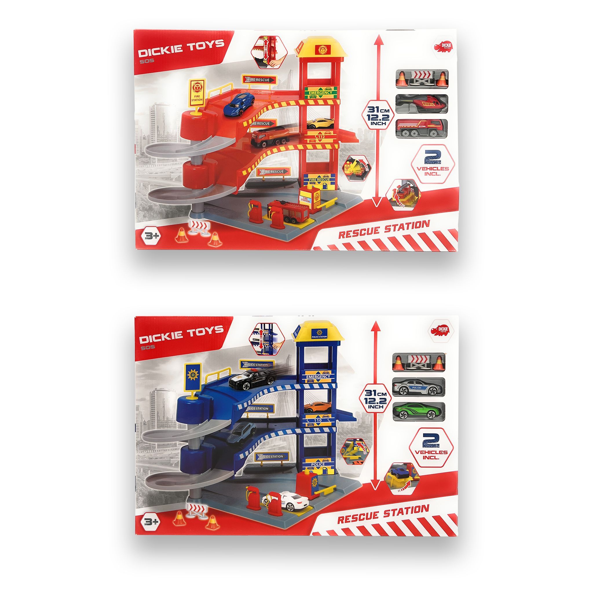 Dickie Toys Dickie Toys Rettungsstation Parkgarage Rescue Station SOS Feuerwehr Polizei Auto