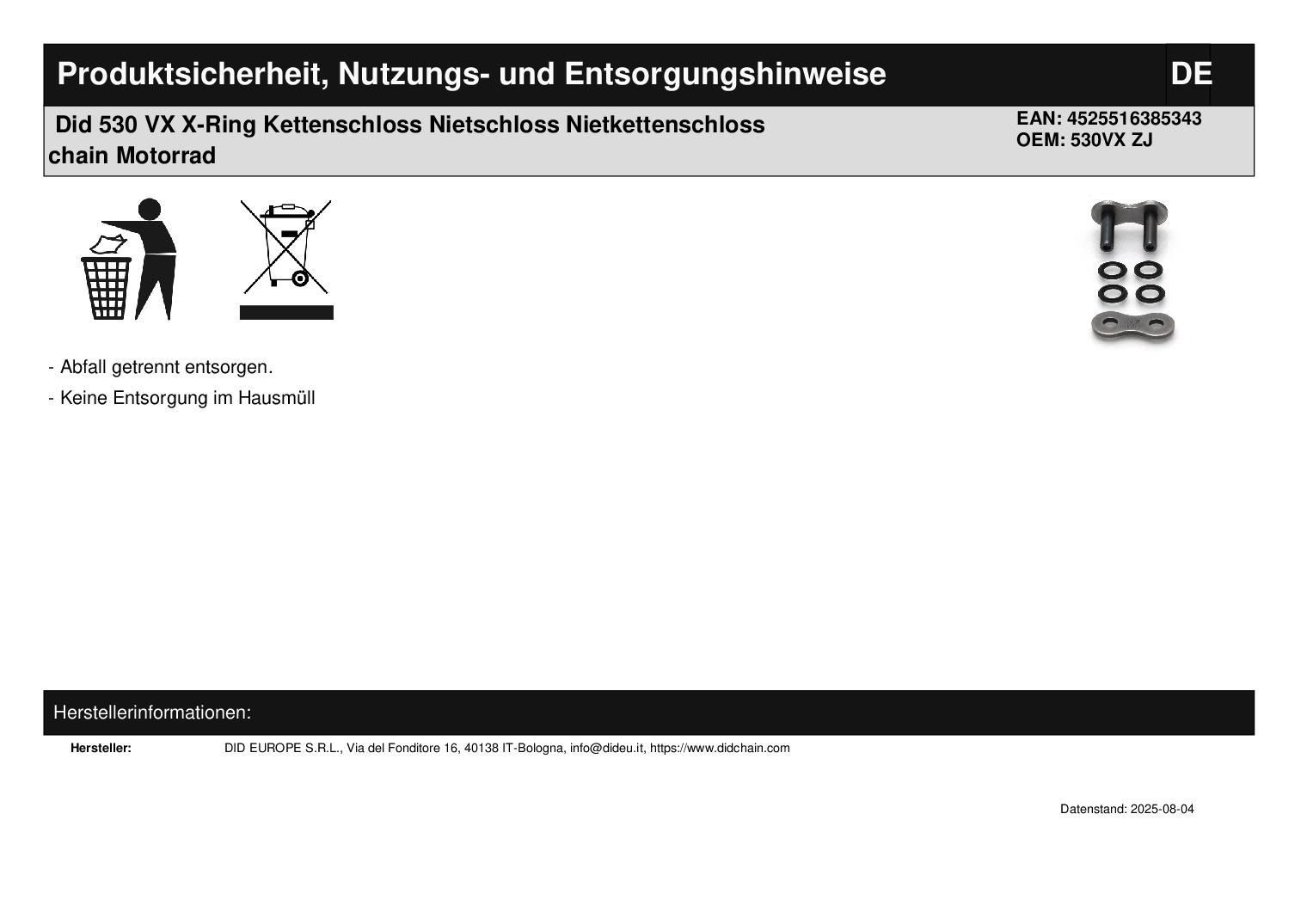 Did 530 VX X-Ring Kettenschloss Nietschloss Nietkettenschloss chain Motorrad