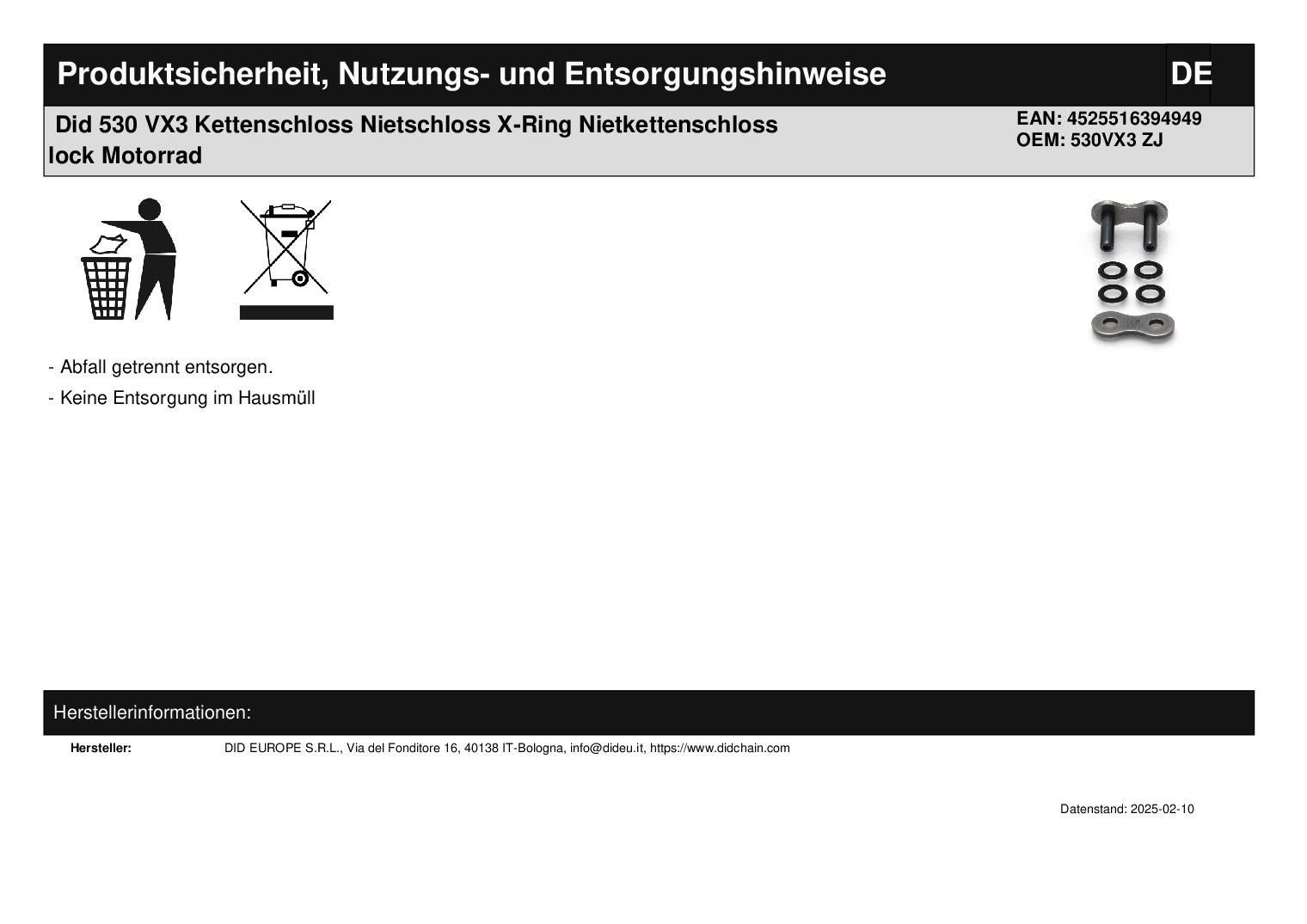 Did 530 VX3 Kettenschloss Nietschloss X-Ring Nietkettenschloss lock Motorrad