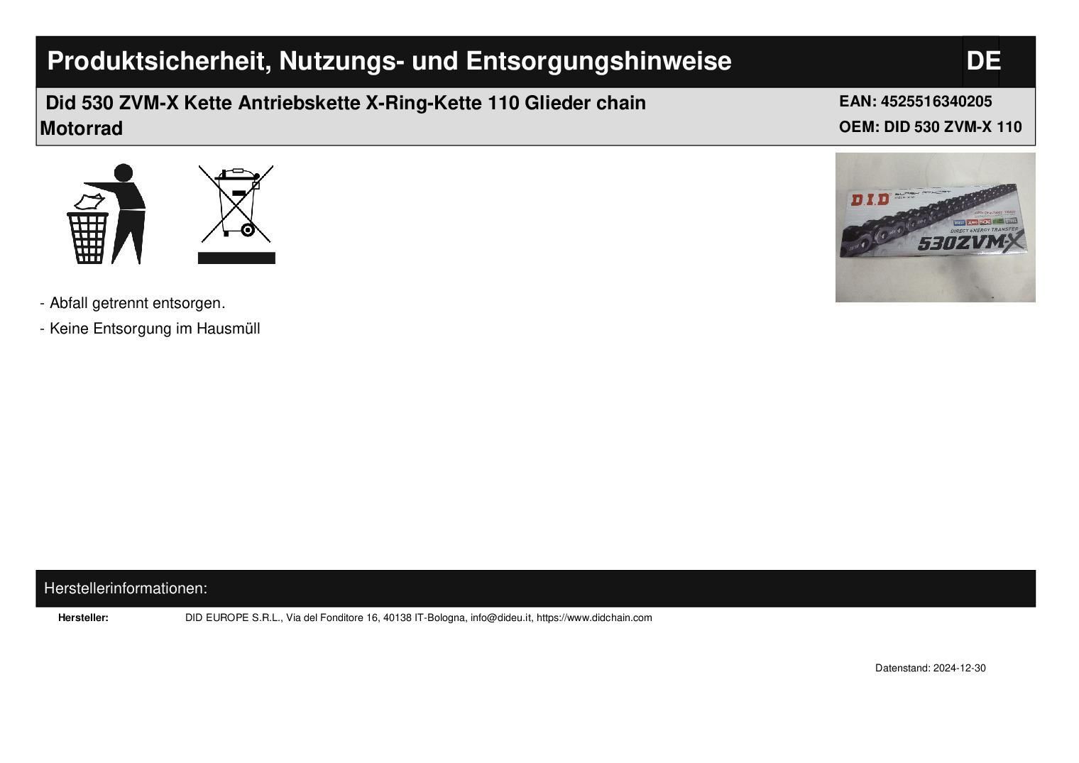 Did 530 ZVM-X Kette Antriebskette X-Ring-Kette 110 Glieder chain Motorrad