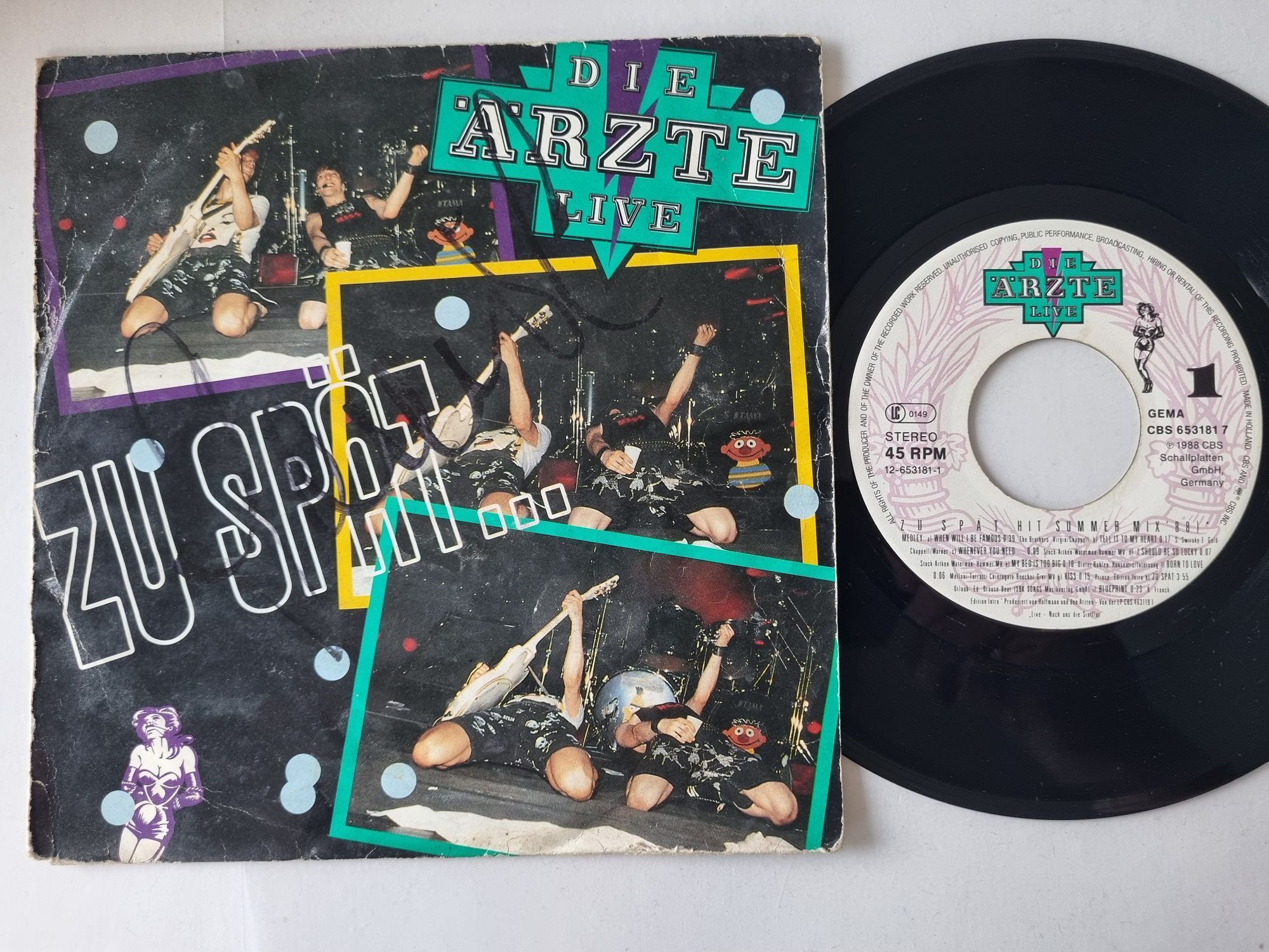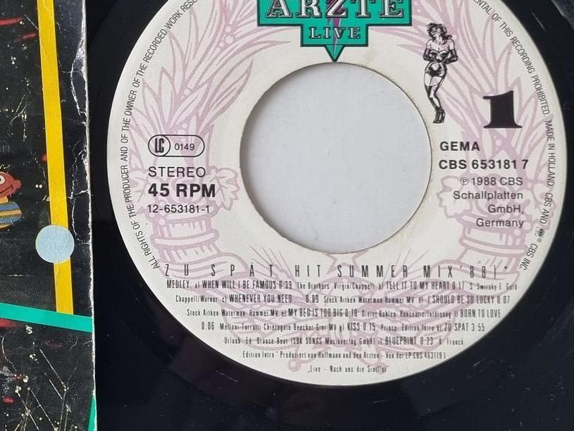 Die Ärzte - Zu Spät (Hit Summer Mix '88) 7'' Vinyl Holland/ BAD Condition!!