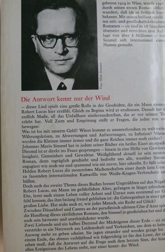 Die Antwort kennt nür der Wild Roman, Erstausgabe, Erstes Buch Johannes Mario Simmel