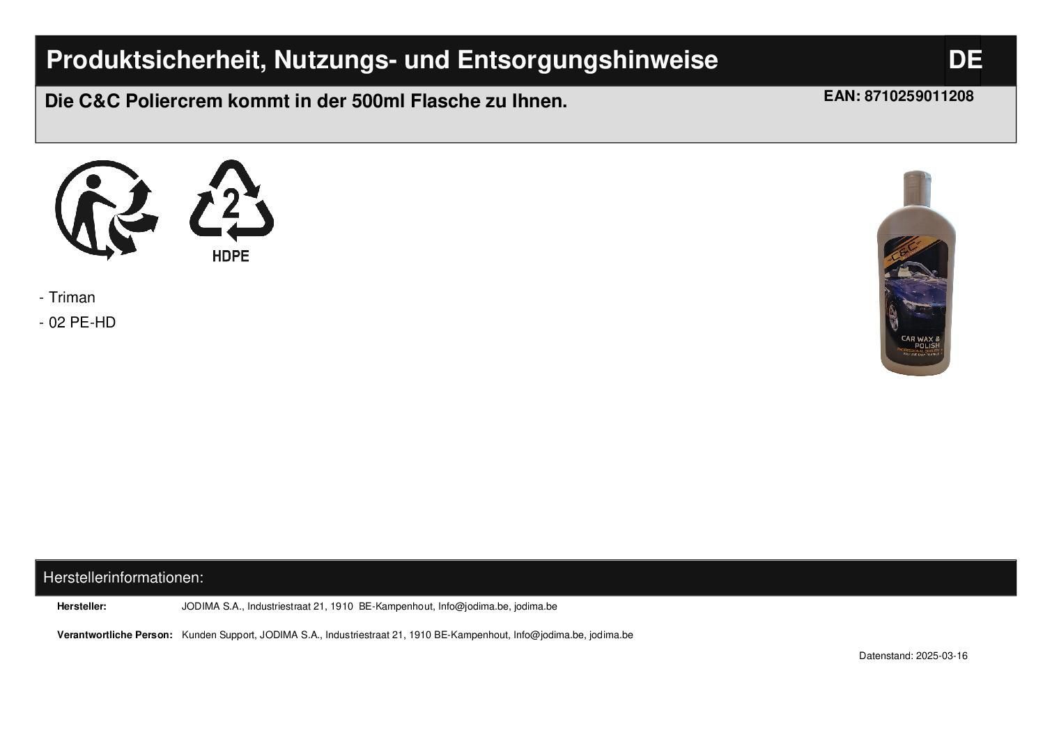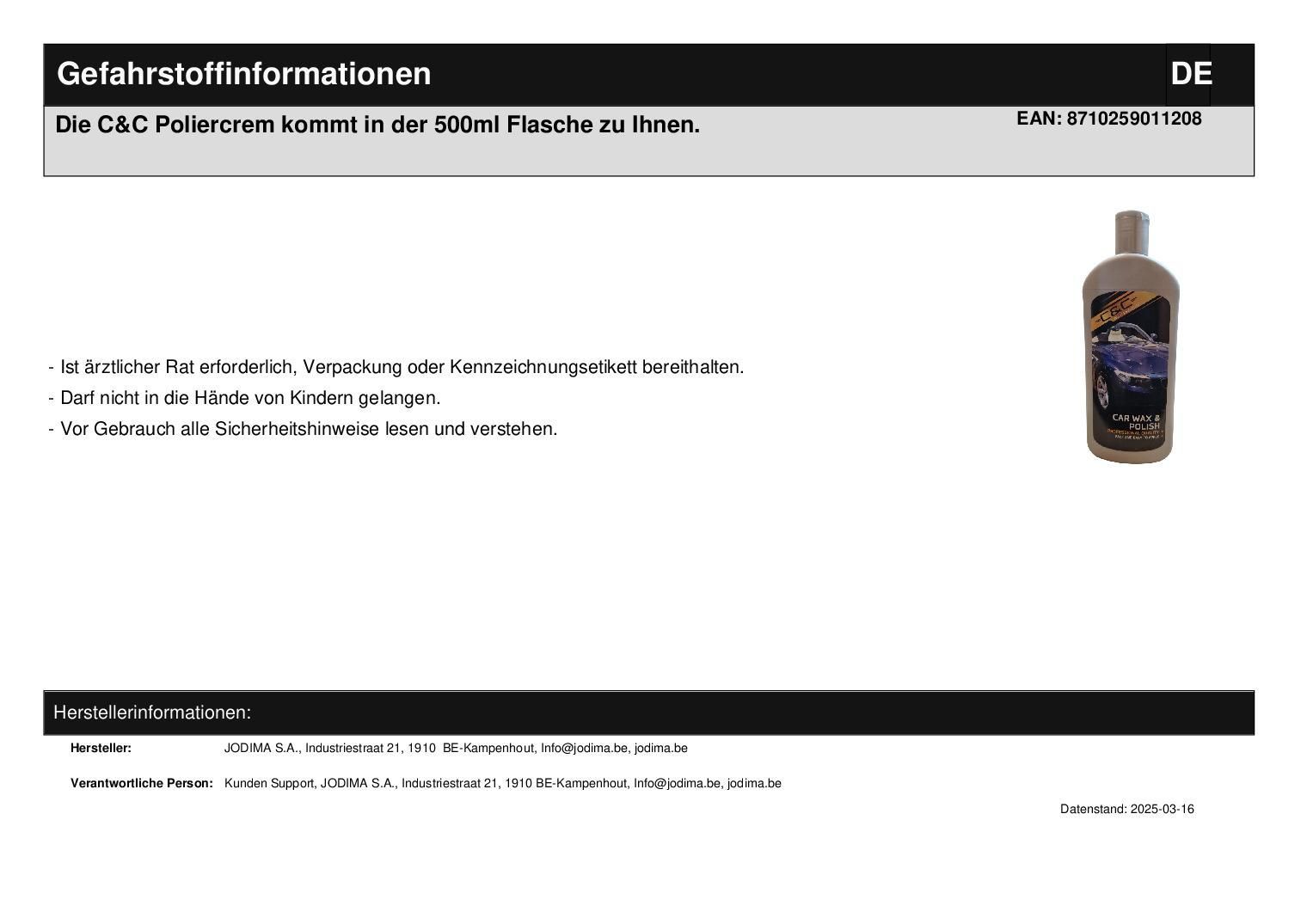 Die C& Poliercrem kommt in der 500ml Flasche zu Ihnen