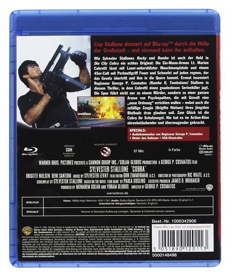 Die City Cobra mit Sylvester Stallone, Brigitte Nielsen, BLU-RAY/ NEU/ OVP