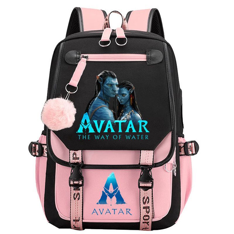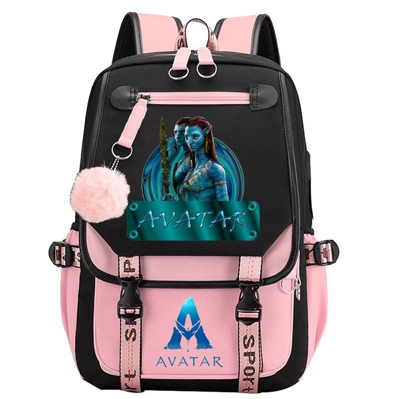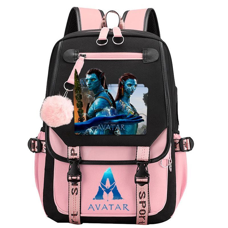 Die Dach Avatar USB Reise Rucksack Teenager Schultasche 29 * 16 * 46cm Schwarz-Rosa