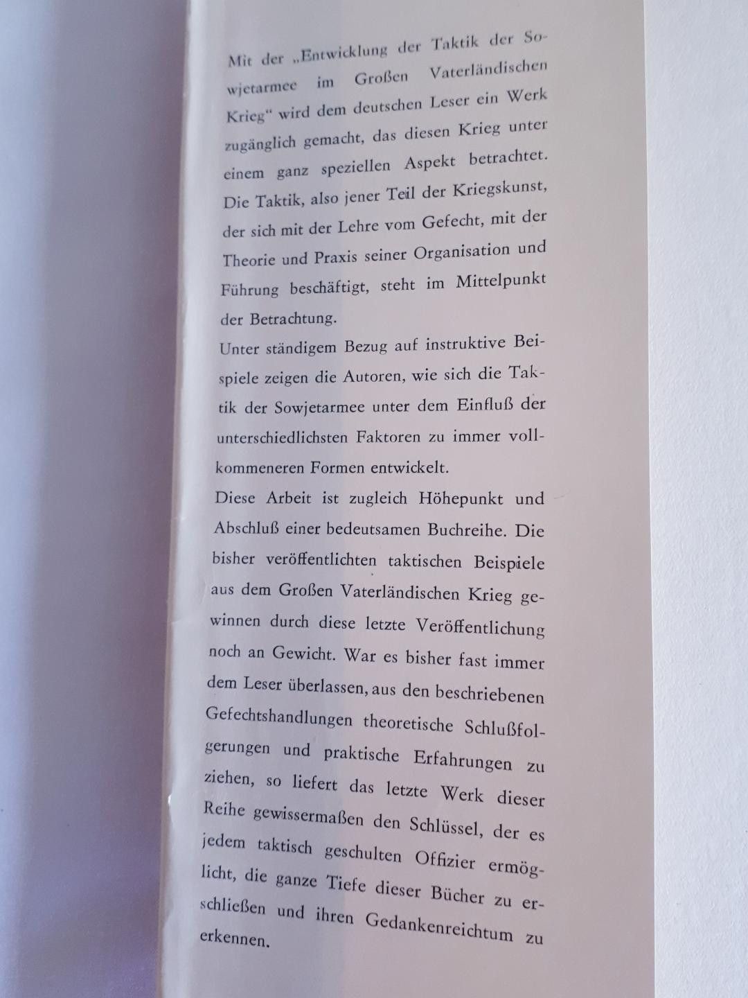 Die Entwicklung der Taktik der Sowjetarmee im Großen Vaterländischen Krieg * Seitenanzahl: 443 * Deutscher Militärverlag, Berlin 1961 Zustand: gut - gebraucht mit einigen Gebrauchsspuren (das Buch weist altersbedingte Bräunungsspuren auf, ferner ist der Schutzumschlag stark lädiert)