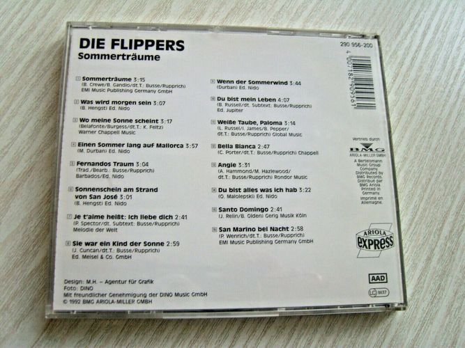 Sie bieten auf die abgebildete CD (in den Fotos sind einzelne Titel und Cover ersichtlich) in gutem Zustand. Original-CD CD-Album mit 16 Titel, Gesamtspielzeit ca. 51 Minuten. Die Flippers - Sommerträume 1 Sommerträume 2 Was wird morgen sein 3 Wo meine Sonne scheint 4 Einen Sommer lang auf Mallorca