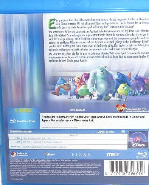 Die Monster AG - Walt Disney - Pixar - Blu-ray