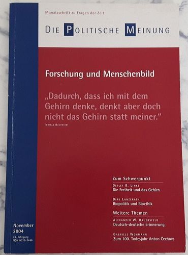 Die politische Meinung. Forschung und Menschenbild * Monatsschrift November 2004