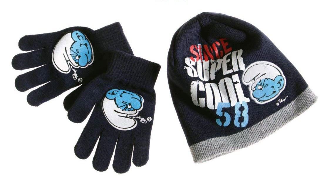 Die Schlümpfe Winter Set Blau Mütze und Handschuhe