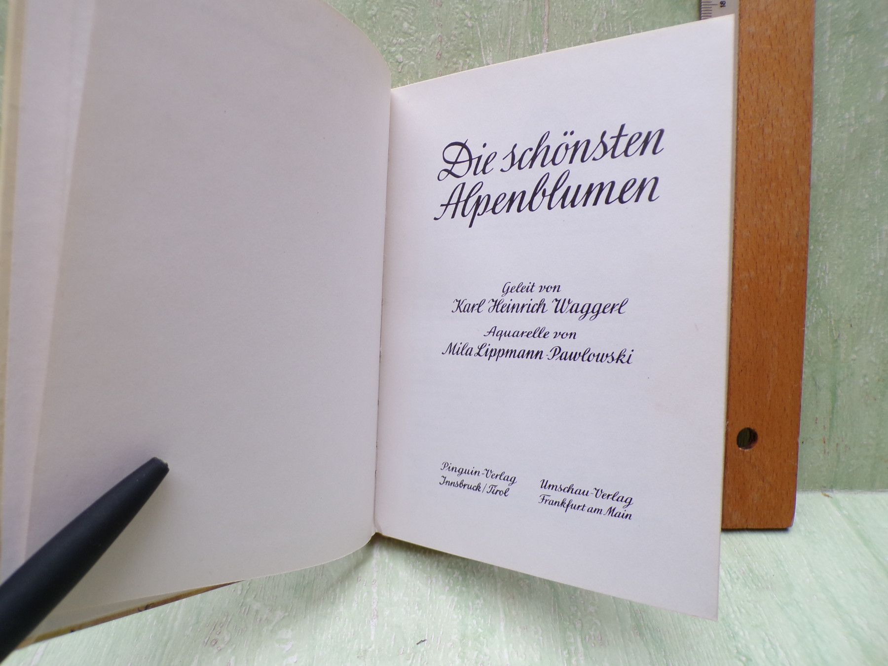 Jugend- & Kinderbücher uvm ... Erinnerungen ..... . Die schönsten Alpenblumen . Geleit von Karl Heinrich Waggerl Aquarelle von Mila Lippmann-Pawlowski Pinguin Verlag 16. Auflage 1971 . Hardcover, Fadenbindung , Minibuch . Zustand : an dem Buchrücken ist die Schrumpffolie defekt , Ecken leicht be