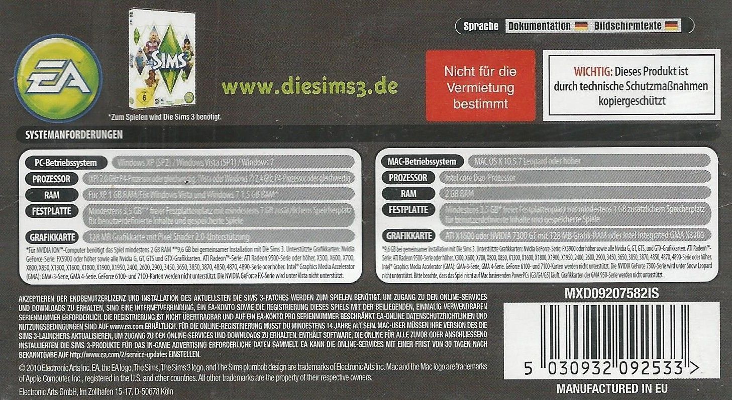 EA Die Sims 3: Late Night (PC-Mac 2010 DVD-Box) sehr guter Zustand, mit Origin Key