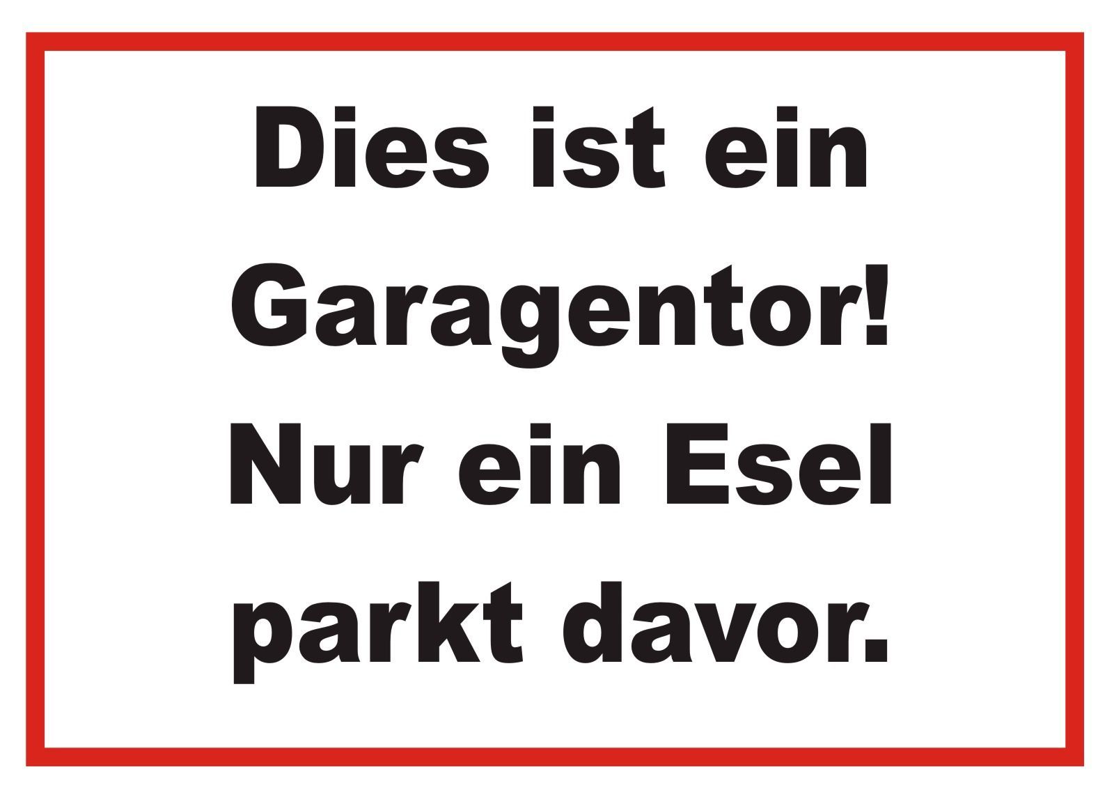 Dies ist ein Garagentor nur ein Esel parkt davor Schild