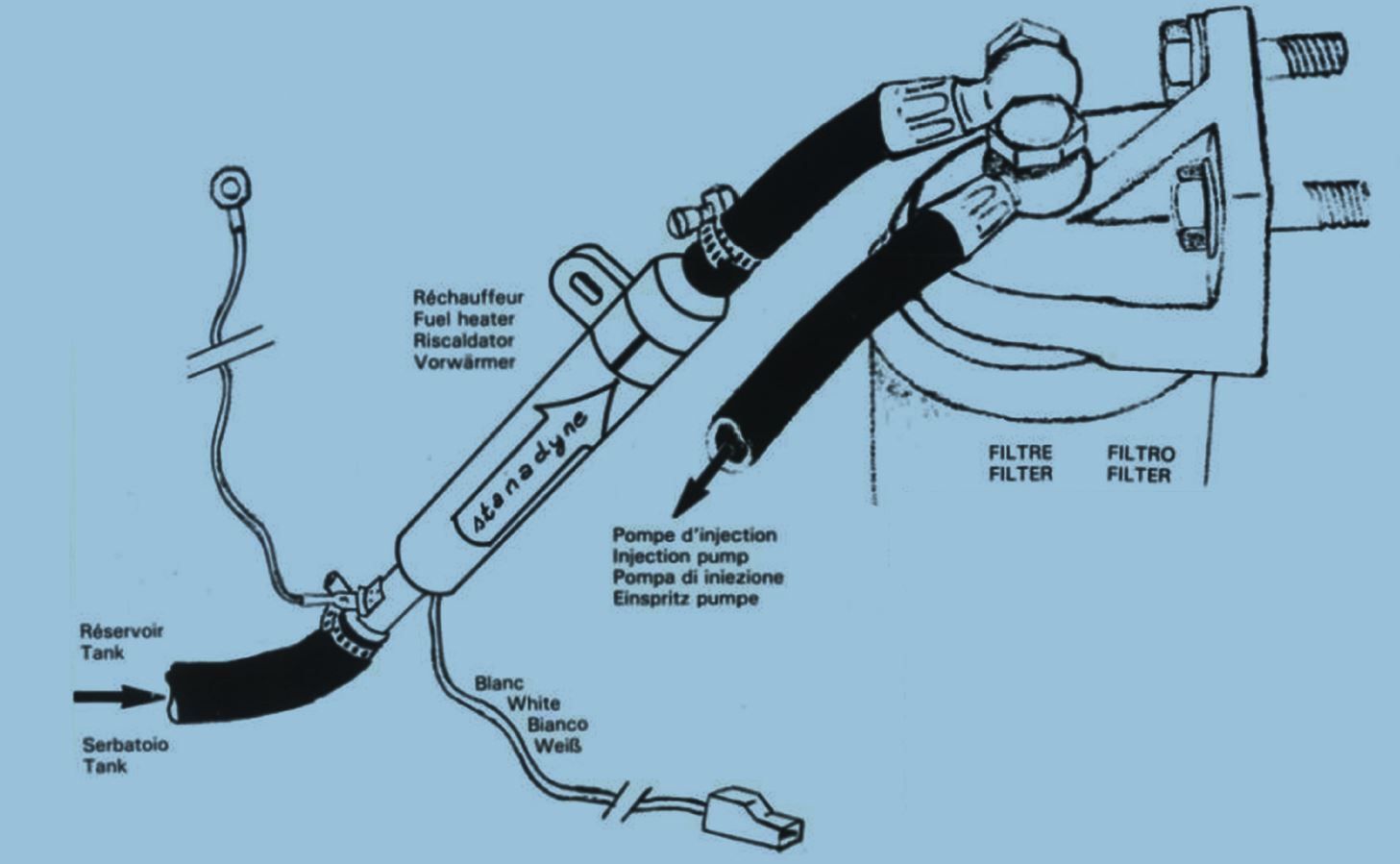 Kraftstoffvorwärmer 12Volt - 150Watt Best-Nr.: 37400011 Durchschitt 23 mm - L. : 175 mm Voltage : 10,7 A - 12 V incl. Kabelsatz und Abschaltrelais Erleichtert den Dieselfluss Das Ideale für die kalte Jahreszeit Automatische Temperaturregelung Sinkt die Temperatur unter 8°C wird der Kraftstoff automa