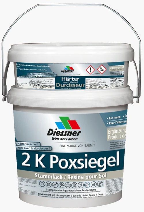 Diessner 2K Poxsiegel Stammlack 4 kg + 1 kg Härter Kieselgrau Bodenfarbe Bodenbesc