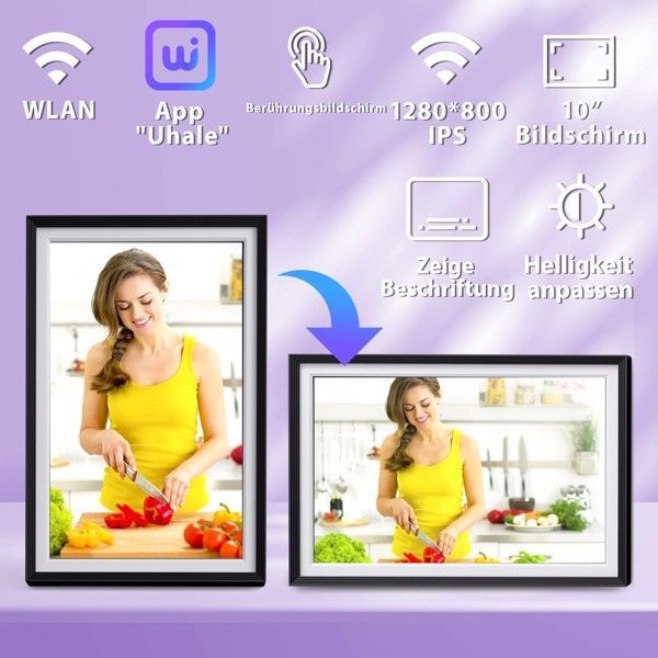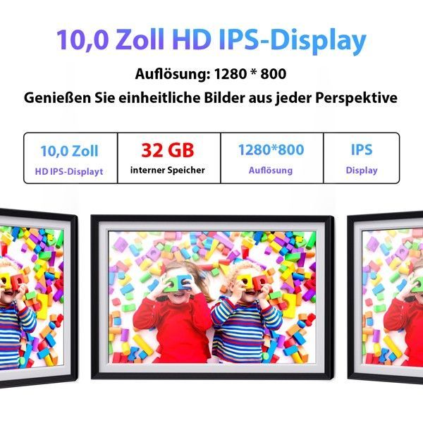 Digitaler Bilderrahmen: 10,1 Zoll, WiFi, 32 GB, HD1280x800
