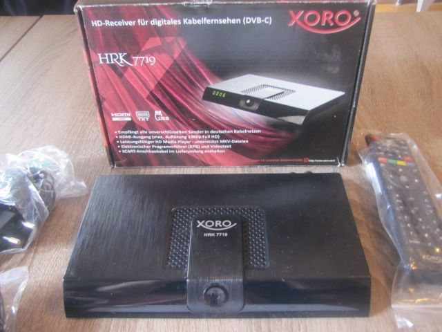 Digitaler HD Kabel Reciever XORO HRK 7719 ***************************************************** - Zustand Neu und OVP - umfangreiches Zubehör: Scart- und Antennenkabel mit anbei - ideale Bedienung für ältere Menschen