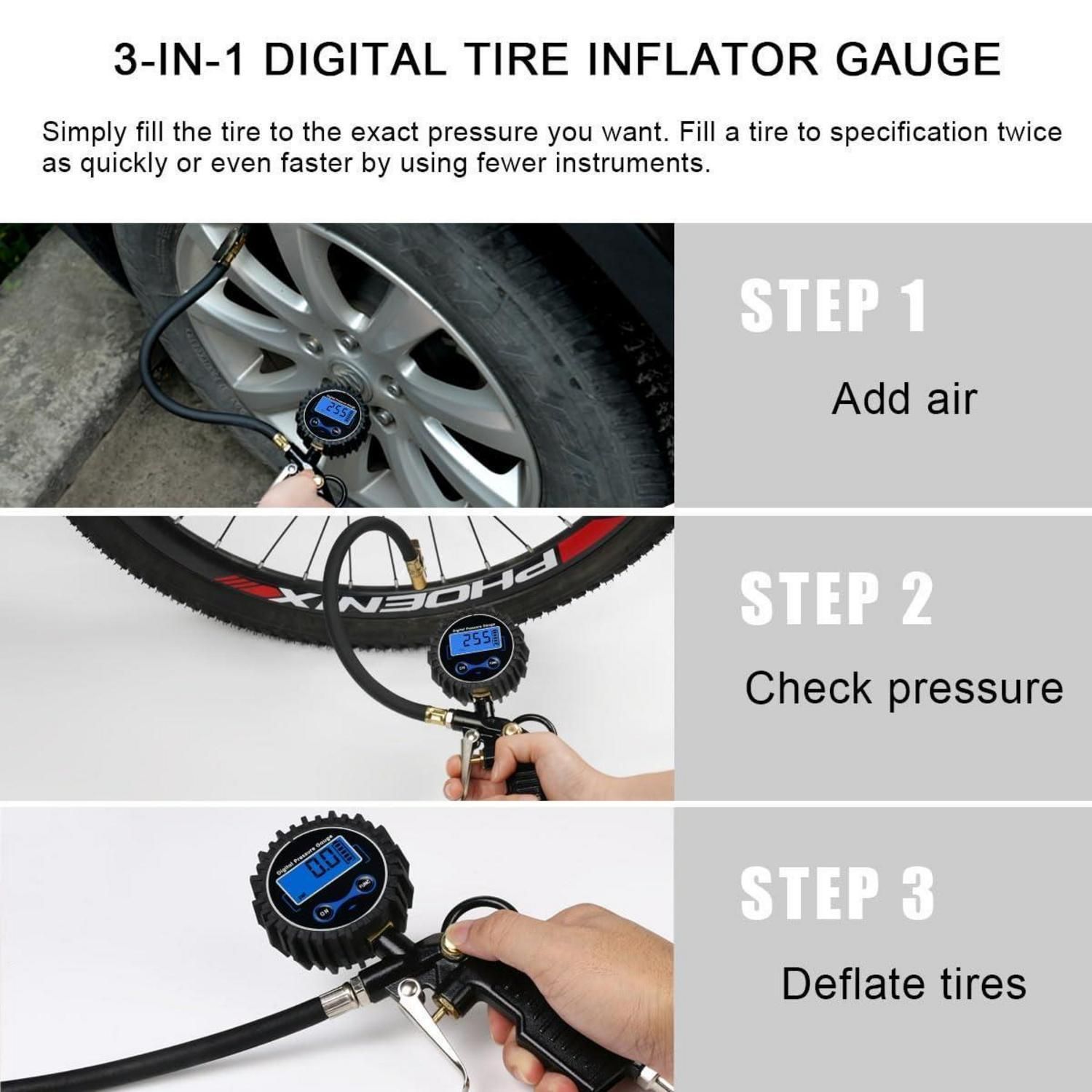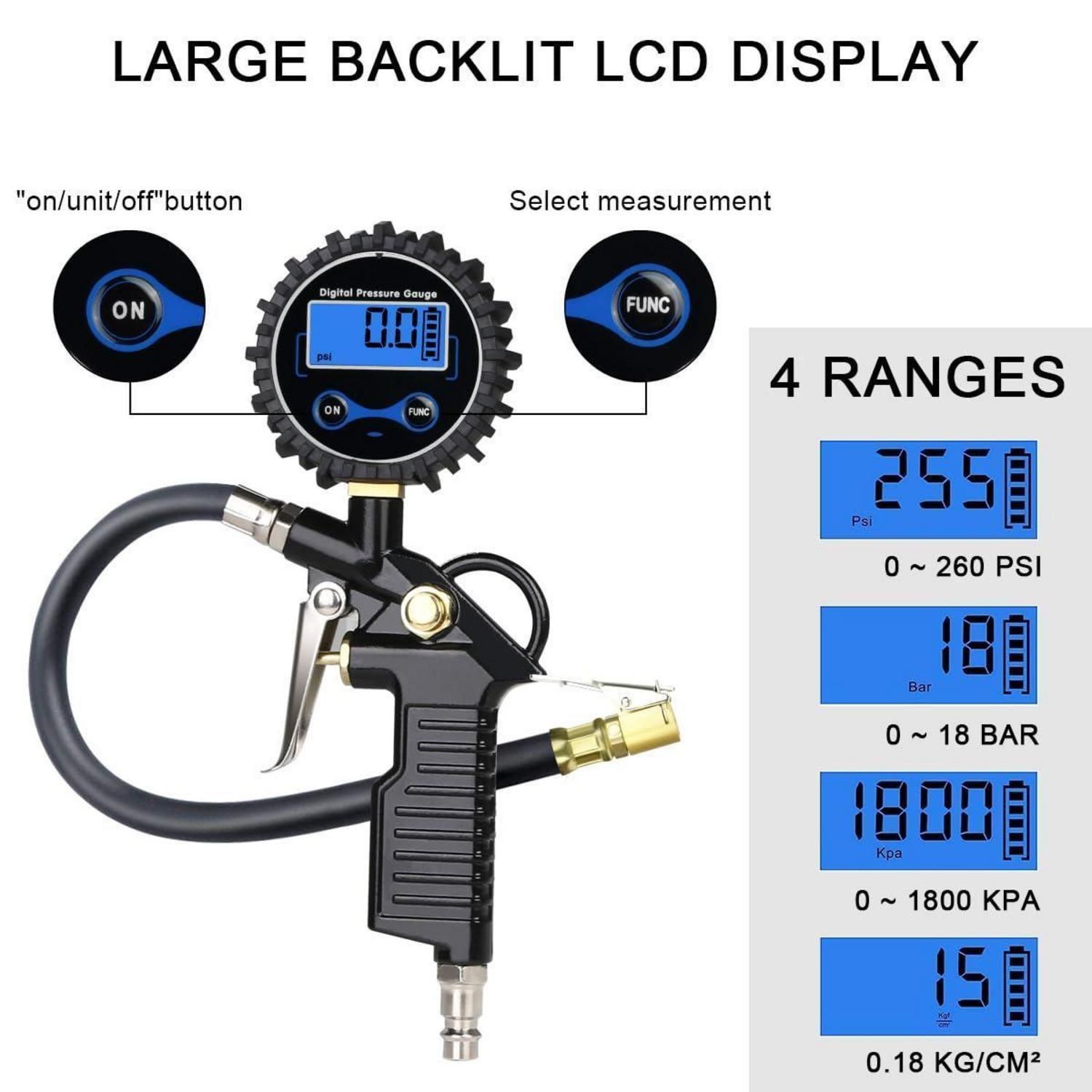 Digitaler Reifendruckmesser 220PSI mit Zubehör 20 Stück URAQT