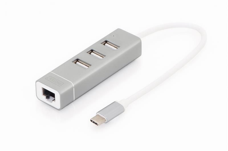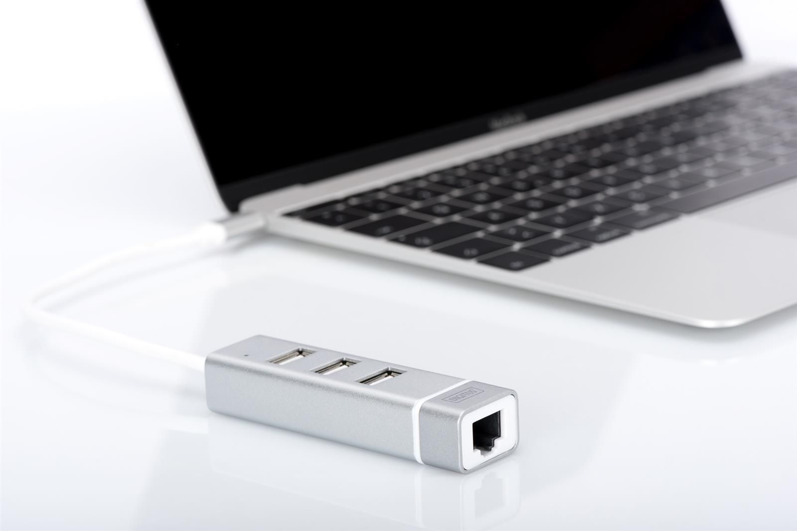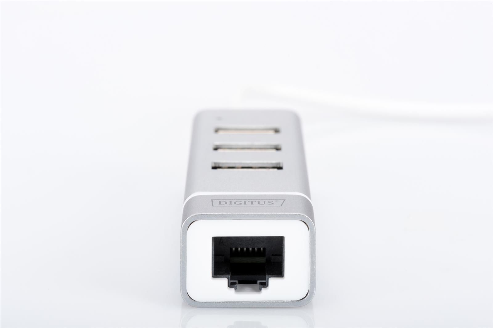 Digitus Digitus USB 2.0 auf Fast Ethernet Adapter, 3-Port USB Hub
