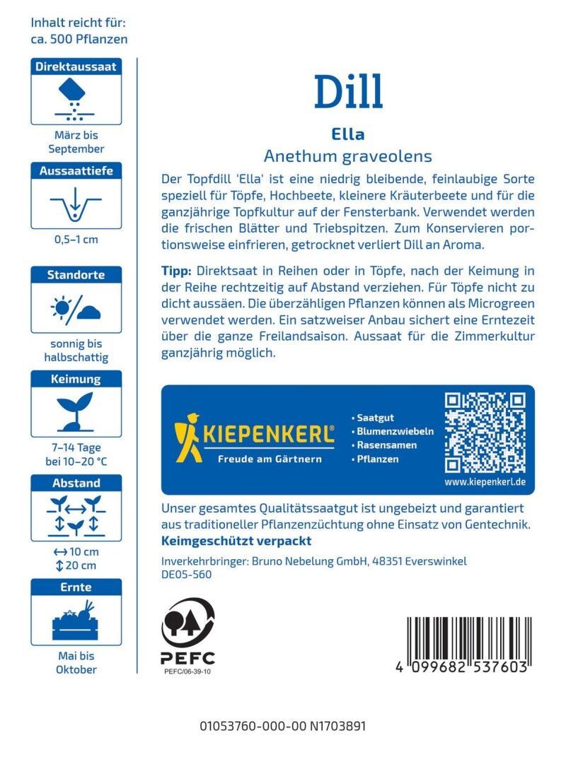 Kiepenkerl Dill Ella, Topfdill mit niedrigem Wuchs für Töpfe, Hochbeete und ganzjähriger