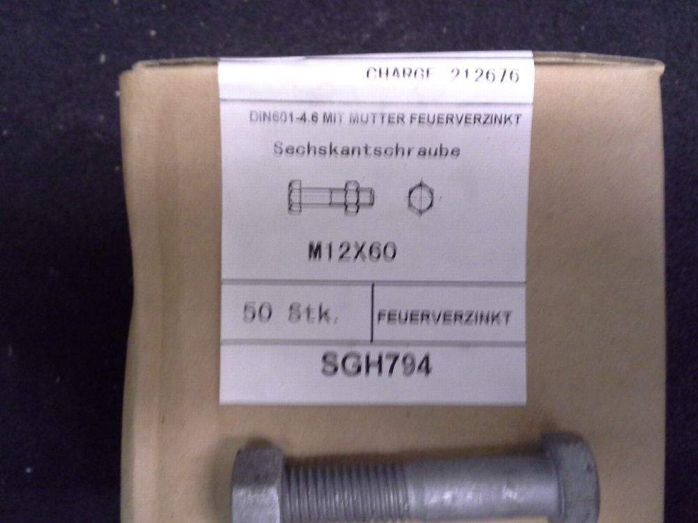 DIN 601 Sechskantschrauben mit Mutter 4.6, Feuerverzinkt M12 x 60 10 Stk