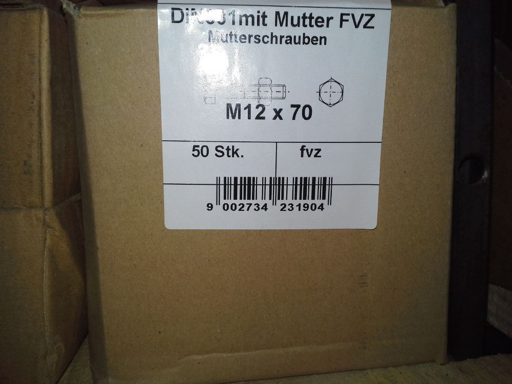 DIN 601 Sechskantschrauben mit Mutter 4.6, Feuerverzinkt M12 x 70 100 Stk