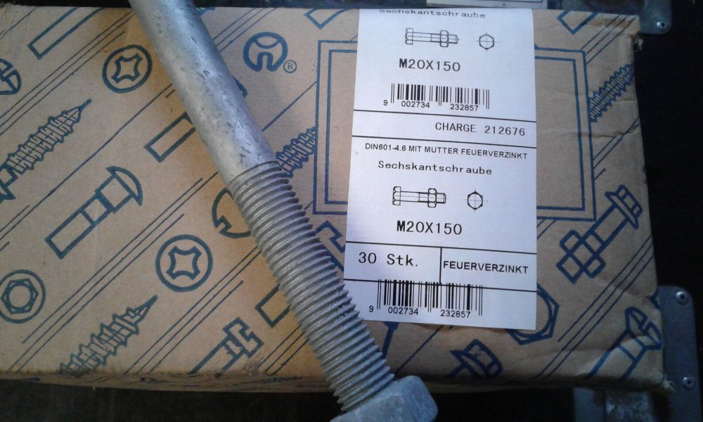 DIN 601 Sechskantschrauben mit Mutter 4.6, Feuerverzinkt M20 x 150 1 Stk