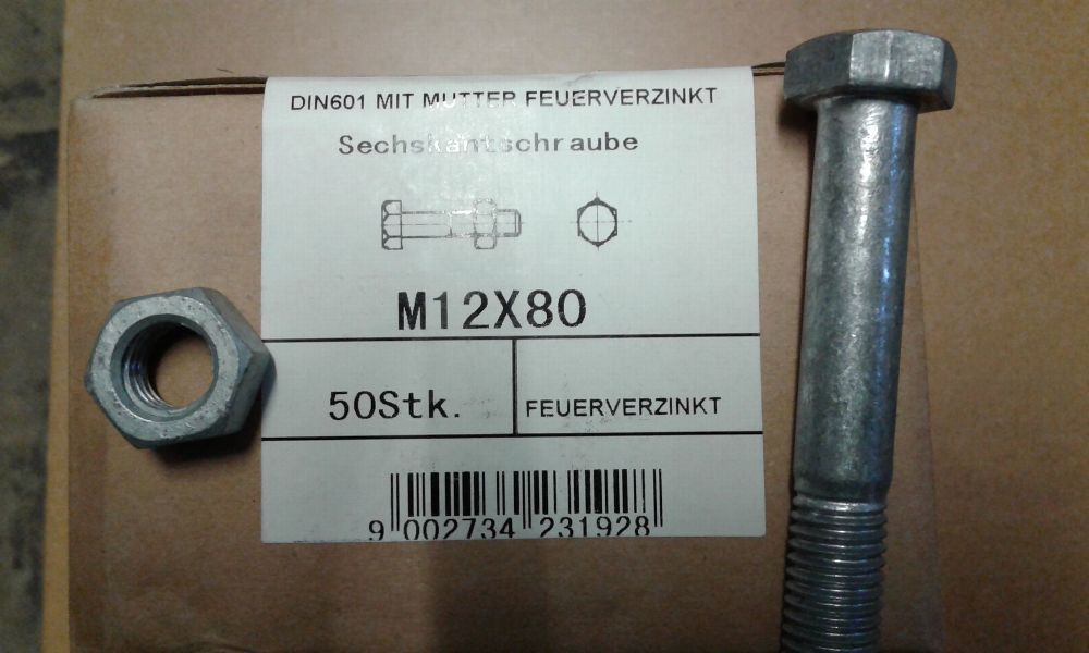 DIN 601 Sechskantschrauben mit Mutter, Feuerverzinkt M12 x 80 2 Stk