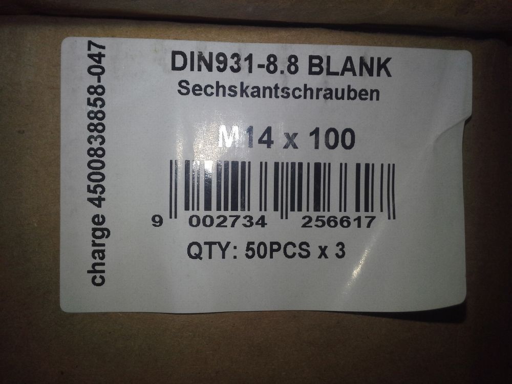 DIN 931 Sechskant-Schaftschraube M14x100 Stahl 8.8 Blank 25 Stk