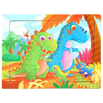 • Kinder Baby Holz Dino Puzzle Cartoon Dinosaurier 12 Teile Puzzle