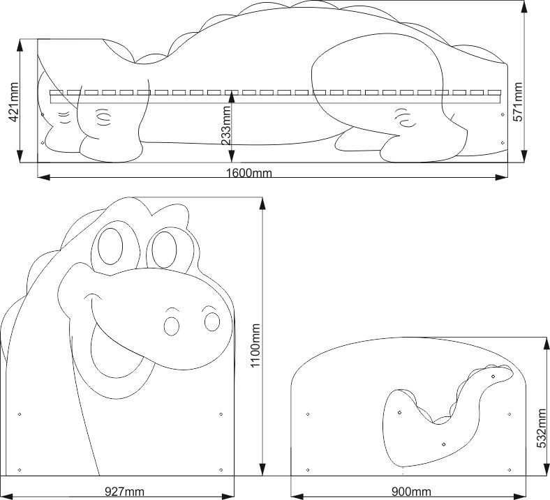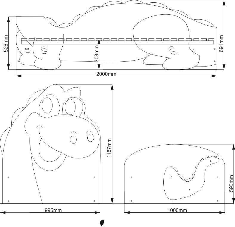 Dino Kinderbett Small/Big – 165x87x112 / 205x97x120 cm