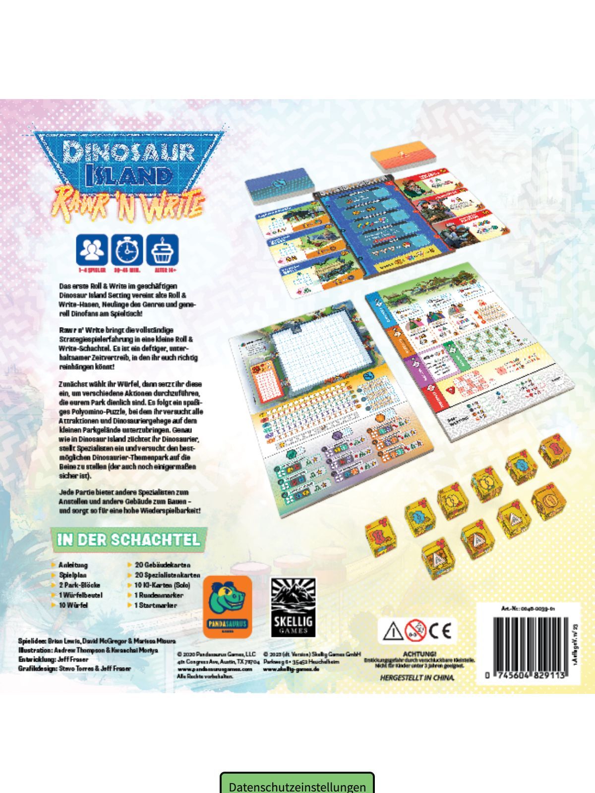 Dinosaur Island Skellig Games Brettspiel Familienspiel Würfelspiel Roll &Write