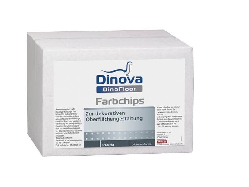 Dinova DinoFloor Farbchips 1 kg Details für DinoFloor Farbchips 1 kg: Dekorative Oberflächengestaltung für Fußbodenbeschichtungen DinoFloor Farbchips eignen sich für die dekorative Oberflächengestaltungen von Fußböden im Innen- und Außenbereich. In Verbindung mit einem transparenten Schutzüberzug, w
