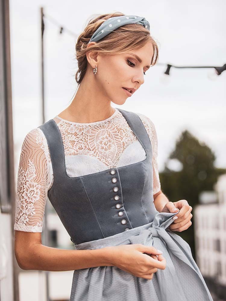 Marjo Dirndl & Trachten Dirndl Marlene 70cm Länge light denim - Größe: 38