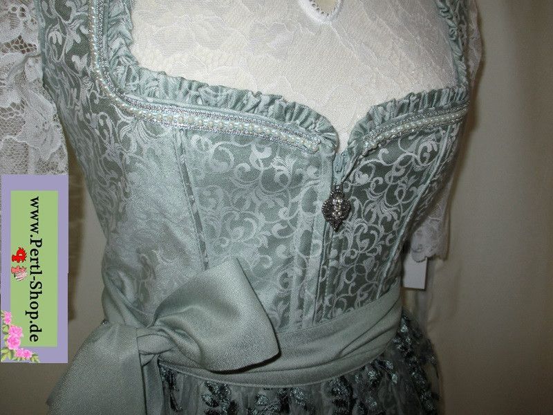 Dirndl mit Spitzen Schürze, Salbei grün, Neu, Gr. 38, Fuchs Trachtenmode Fuchs Trachtenmode Neuware Rocklänge 65 cm Material: Futter 100 % Baumwolle Rock, Oberteil, Schürze 55 % Polyester 45 % Viscon Kaufpreis ist ohne Bluse