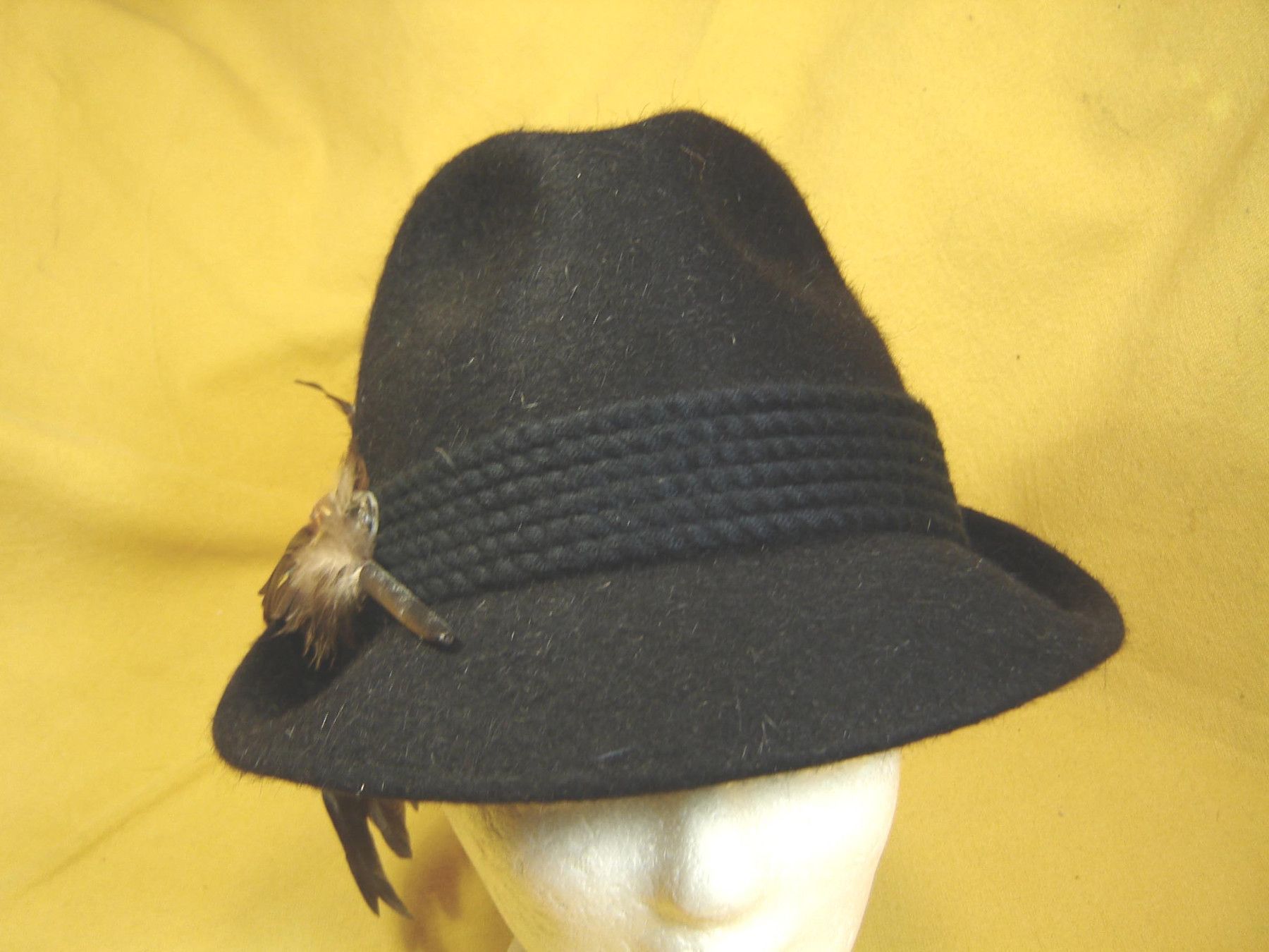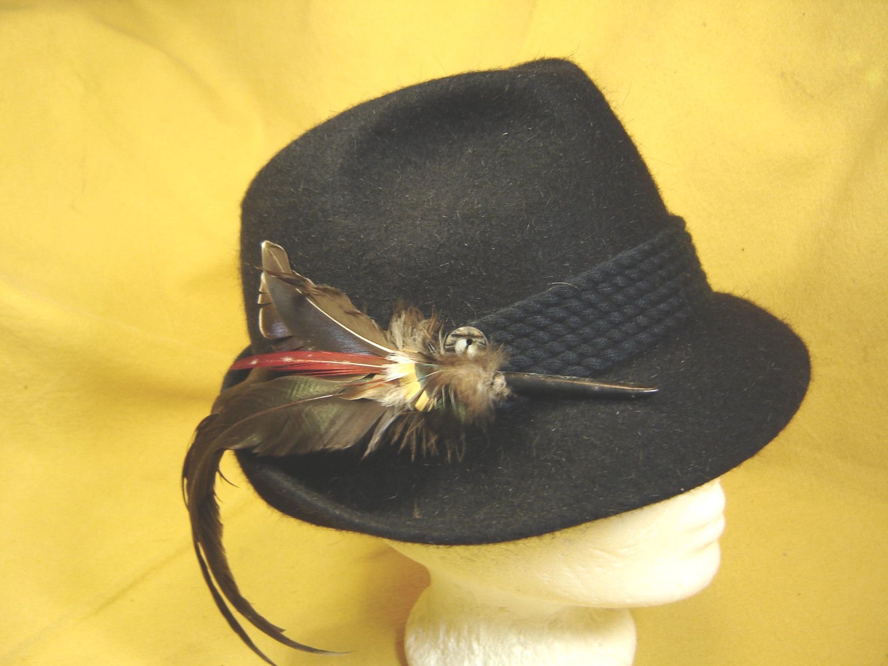 . schmaler Damenhut Trachtenhut Dirndlhut , Einzelstück aus meiner eigenen Kollektion in kleiner Trachtenform aus feinem 100% Rauhhaarfilz gearbeitet, dieser Hut ist wettertauglich und sehr robust, also nicht nur ausserordentlich dekorativ , sondern absolut strapazierfähig in Farbe dunkelblau mit 4f