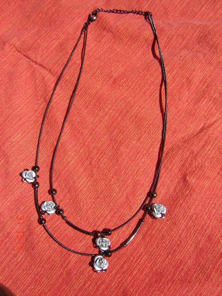 Dirndlkette kleine silberne Rosen Collier Kette schwarz Z p