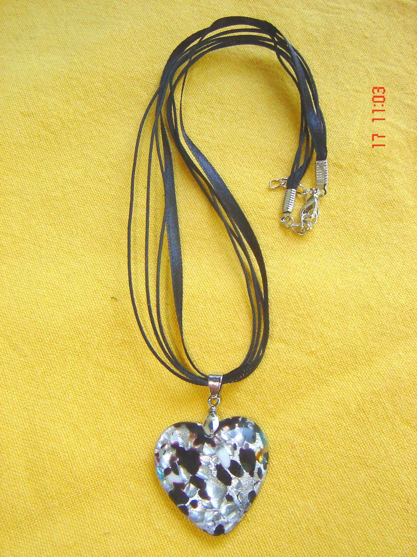 Dirndlkette Trachtenkette Glasherz an Bändchen Sommerkette schwarz grau glitzernd p