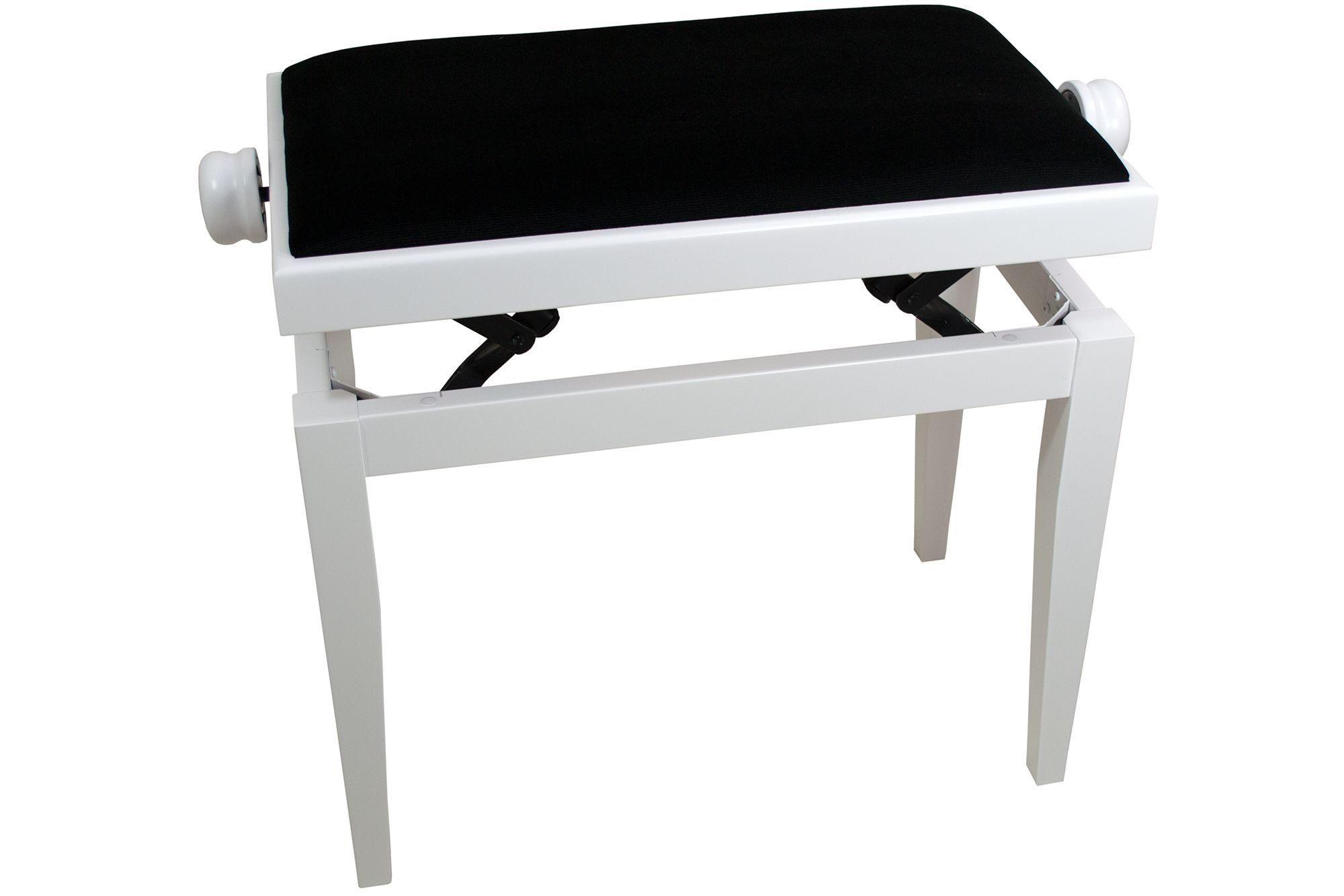Discacciati Klavierbank 105 FR Weiss matt Bezug: Velour schwarz Höhenverstellung: 48 bis 58cm Abmessungen in cm: 55 (B) x 32 (T) Ausführung in weiss matt Made in Italy