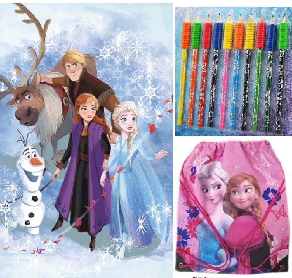 Disney Frozen Decke SET mit EXTRA-10-tlg. Buntstifte und Eiskönig Sportbeutel
